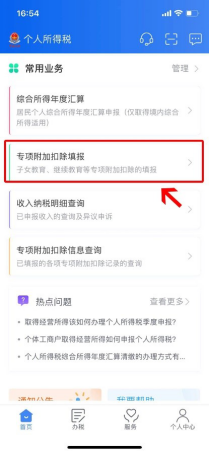 第一步:点击首页“专项附加扣除填报”。