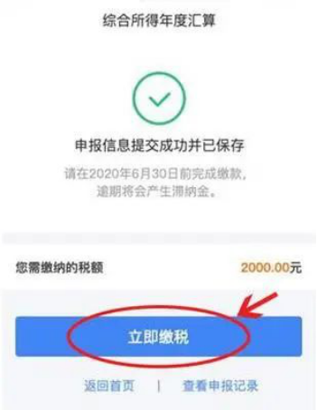 (二)补税金额在400元以上的,请点击“立即缴税”,办理补税。