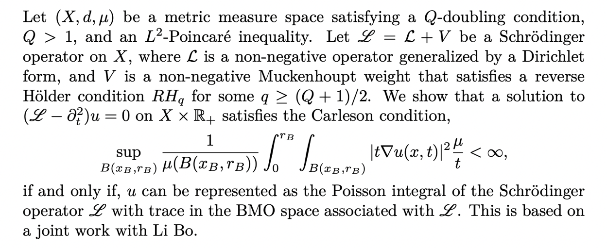 报告题目:On the Poisson integral of BMO functions associated with Schrodinger operators
