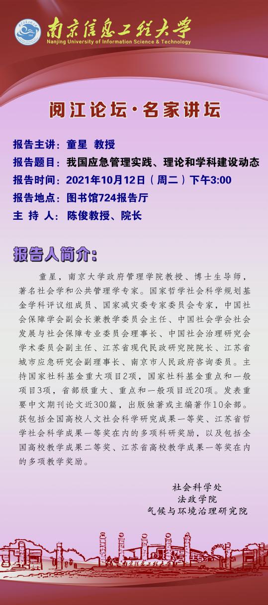 阅江论坛•名家讲坛——特邀著名社会学、公共管理学专家童星教授来我校作专题学术报告