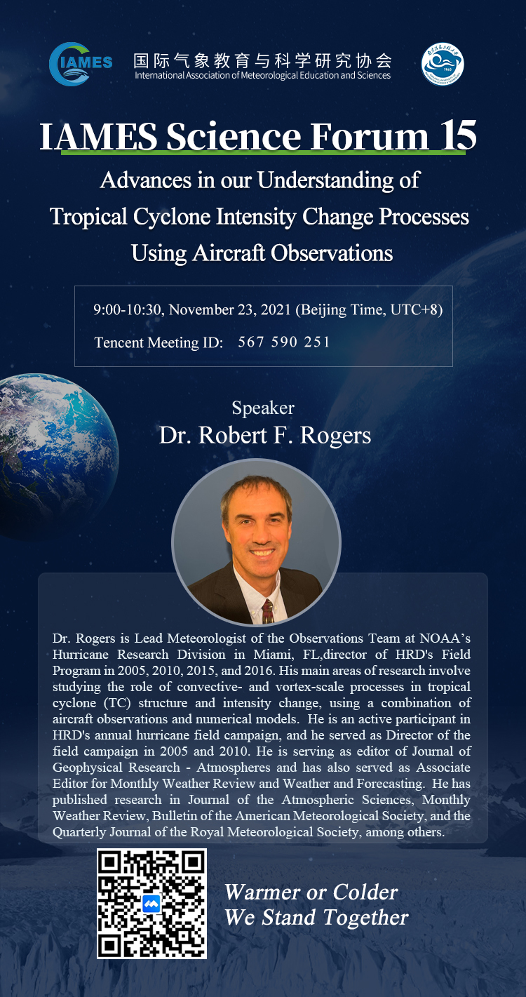 报告题目:Advances in our Understanding of Tropical Cyclone Intensity Change Processes Using Aircraft Observations