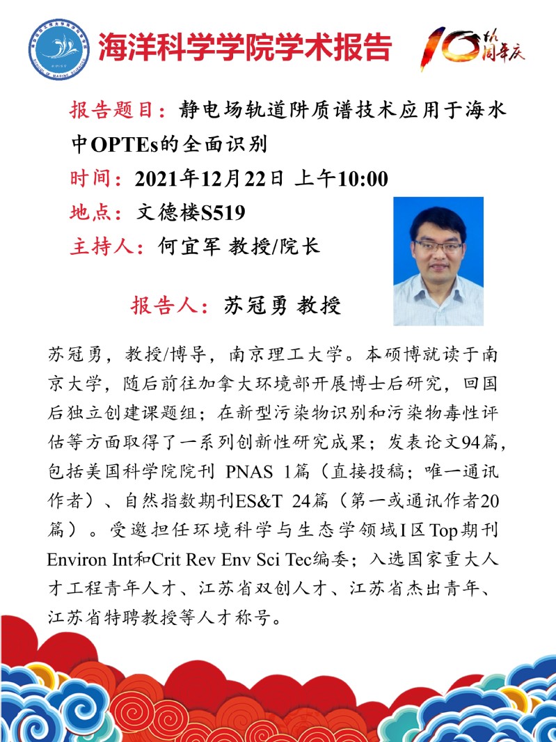苏冠勇,教授/博导,南京理工大学。本硕博就读于南京大学,随后前往加拿大环境部开展博士后研究,回国后独立创建课题组;在新型污染物识别和污染物毒性评估等方面取得了一系列创新性研究成果;发表论文94篇,包括美国科学院院刊PNAS 1篇(直接投稿;唯一通讯作者)、自然指数期刊ES&T 24篇(第一或通讯作者20篇)。受邀担任环境科学与生态学领域I区Top期刊Environ Int和Crit Rev Env Sci Tec编委;入选国家重大人才工程青年人才、江苏省双创人才、江苏省杰出青年、江苏省特聘教授等人才称号。