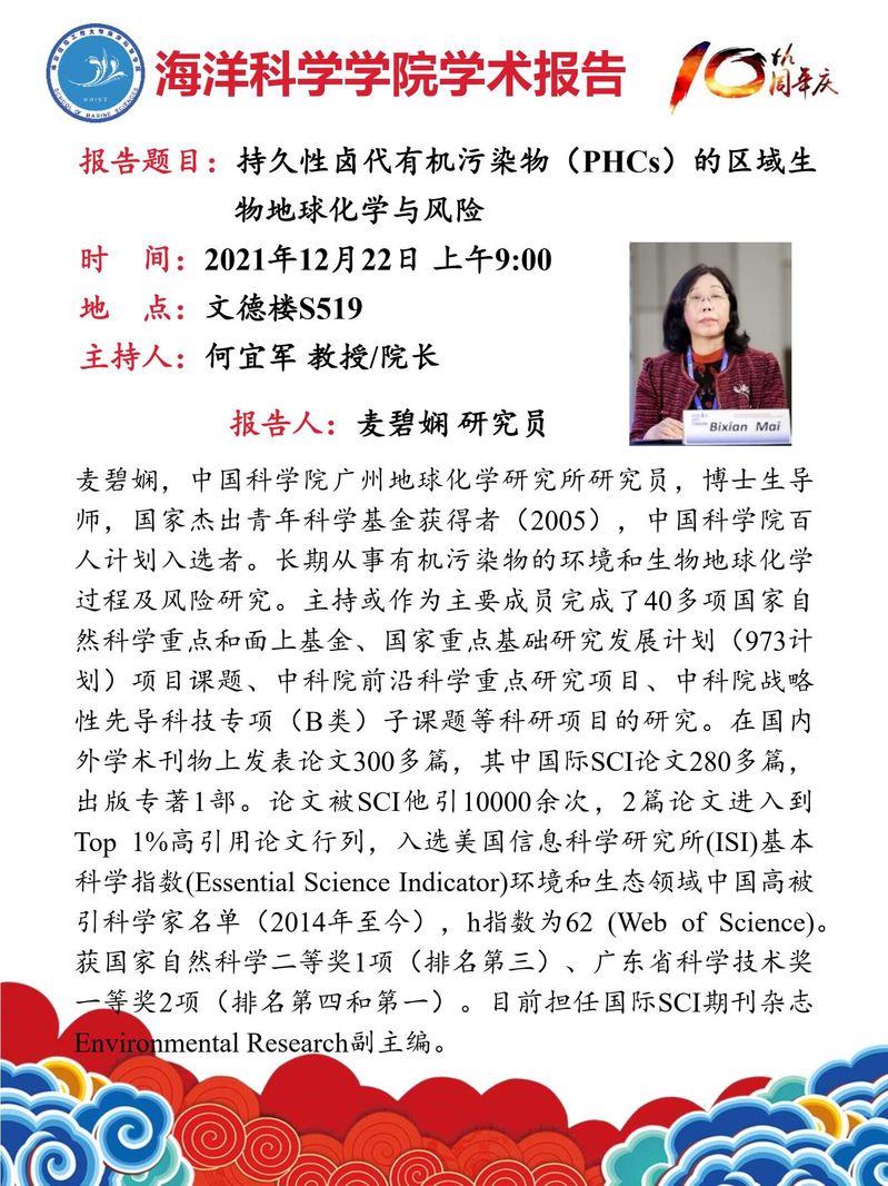 报告人:麦碧娴 中国科学院广州地球化学研究所研究员