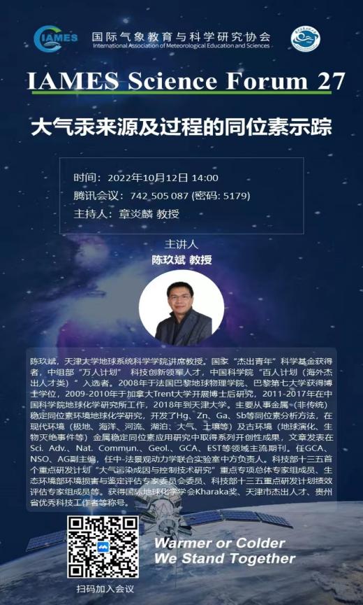 陈玖斌,天津大学地球系统科学学院讲席教授。国家“杰出青年”科学基金获得者,中国科学院“百人计划(海外杰出人才类)”入选者。2008年于法国巴黎地球物理学院、巴黎第七大学获得博士学位,2009-2010年于加拿大Trent大学开展博士后研究,2011-2017年在中国科学院地球化学研究所工作,2018年到天津大学。主要从事金属(非传统)稳定同位素环境地球化学研究,开发了Hg、Zn、Ga、Sb等同位素分析方法,在现代环境(极地、海洋、河流、湖泊、大气、土壤等)及古环境(地球演化、生物灭绝事件等)金属稳定同位素应用研究中取得系列开创性成果,文章发表在Sci. Adv.、Nat. Commun.、Geol.、GCA、EST等领域主流期刊。任GCA、NSO、AG副主编,任中-法景观动力学联合实验室中方负责人。科技部十三五首个重点研发计划“大气污染成因与控制技术研究”重点专项总体专家组成员、生态环境部环境损害与鉴定评估专家委员会委员、科技部十三五重点研发计划绩效评估专家组成员等。获得国际地球化学学会Kharaka奖、天津市杰出人才、贵州省优秀科技工作者等称号。